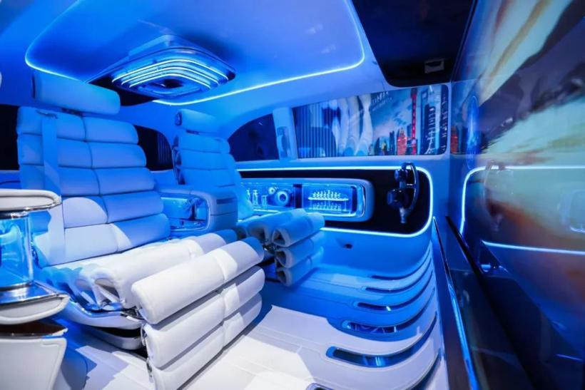 而首秀亮相的Vision V概念车,其产品定位是构筑“私享贵宾厅”。它的后座采用两个头等舱级独立座椅,座舱有水晶白色Nappa皮饰搭配白色丝光绸缎,还有大面积开孔胡桃木饰件、智能可变透光玻璃、65英寸可伸缩影院级巨幕、尊贵的舱内顶灯等。