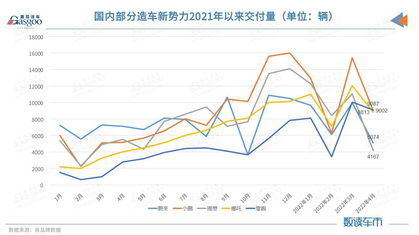 仅以理想汽车为例,受疫情影响,2022年4月仅交付了4167辆理想ONE,较3月的11034辆大幅下降,亏损严重。